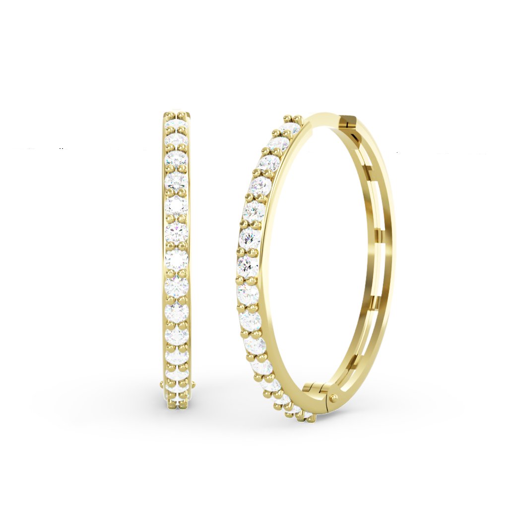 Popis: zlaté náušnice kruhy. Přední polovina náušnic je zdobena kamínky. Zadní polovina náušnice je odlehčená s vysokým leskem. Příjemné zavírání s tenkým štiftem pro pohodlné provlečení uchem. Romantický šperk s elegantním a nadčasovým tvarem. Lehoučké náušnice, které ani nepocítíte, ale díky řadě zářivých kamenů budete nepřehlédnutelná. Máte na výběr ze tří barev zlata. Rozměr šperku 20X2 mm.