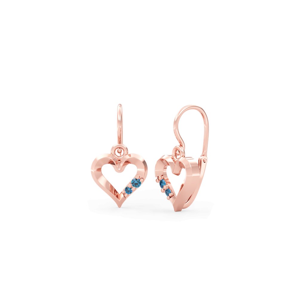 FERVICA Krásne zlaté detské náušnice srdiečka so stredne modrými zirkonmi s ružové zlato