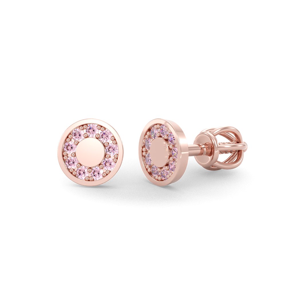 Nadčasové zlaté náušničky kolečka s ružovými zirkónmi na skrutku CYRKULA z ružového zlata
