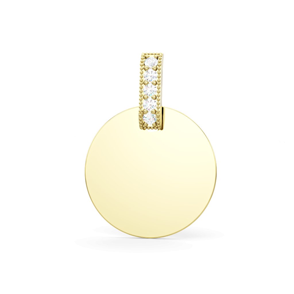 Nadčasový zlatý prívesok RUNDE okrúhla platnička veľká so zirkonmi žlté zlato