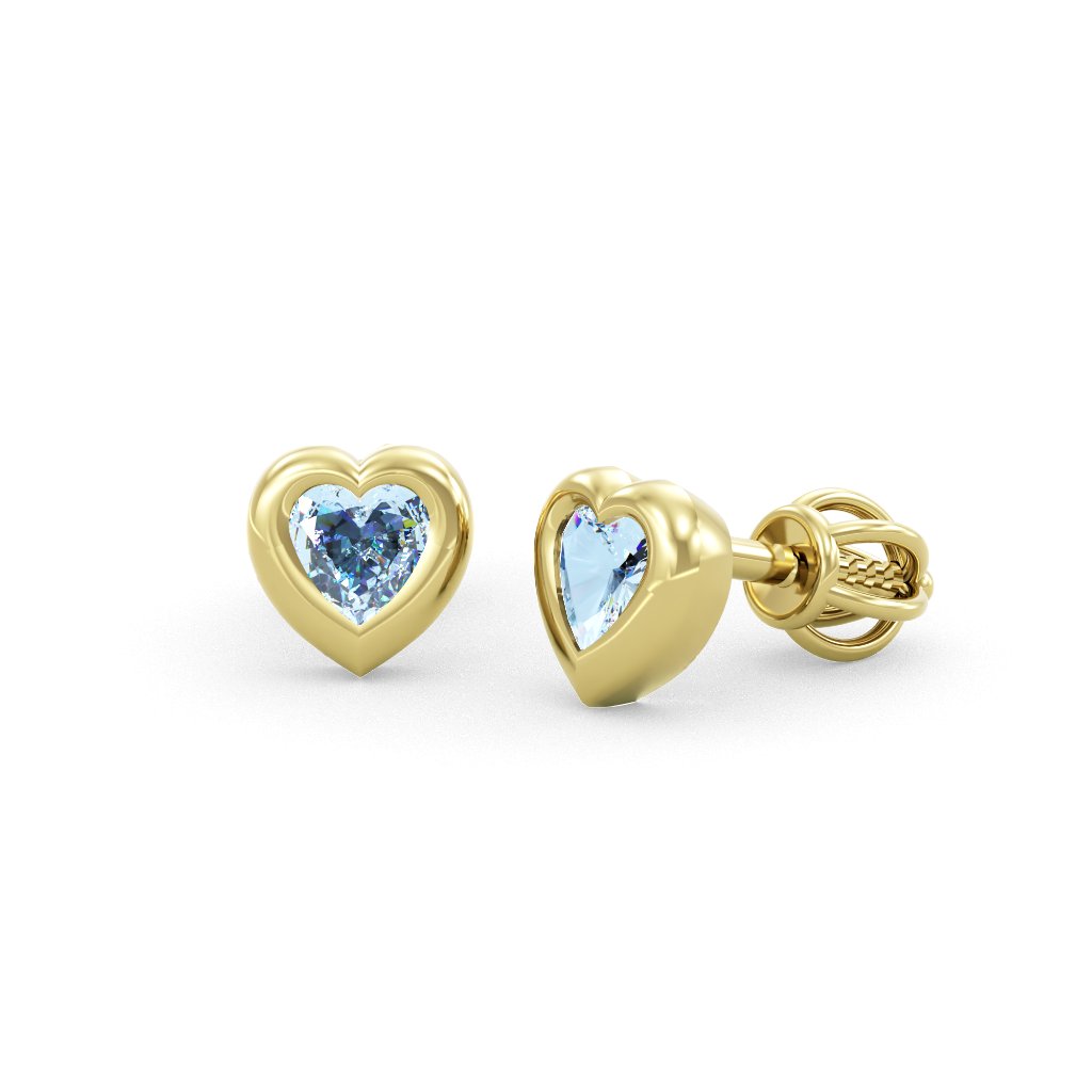 Nežné zlaté náušnice so svetlo modrými zirkonmi srdca LITTLEHEART žlté zlato