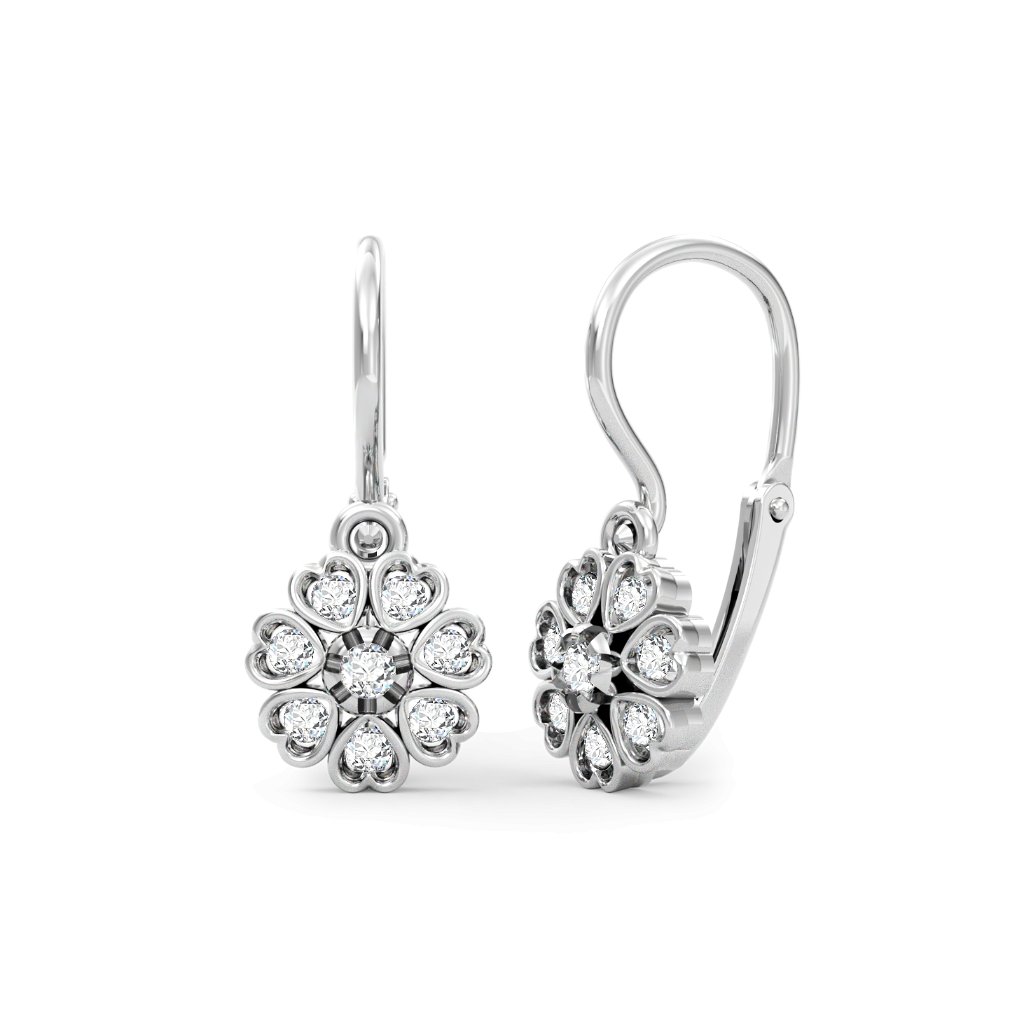 Originálne zlaté detské náušnice so zirkónom a srdiečkami v tvare kvetu MILETA z bieleho zlata