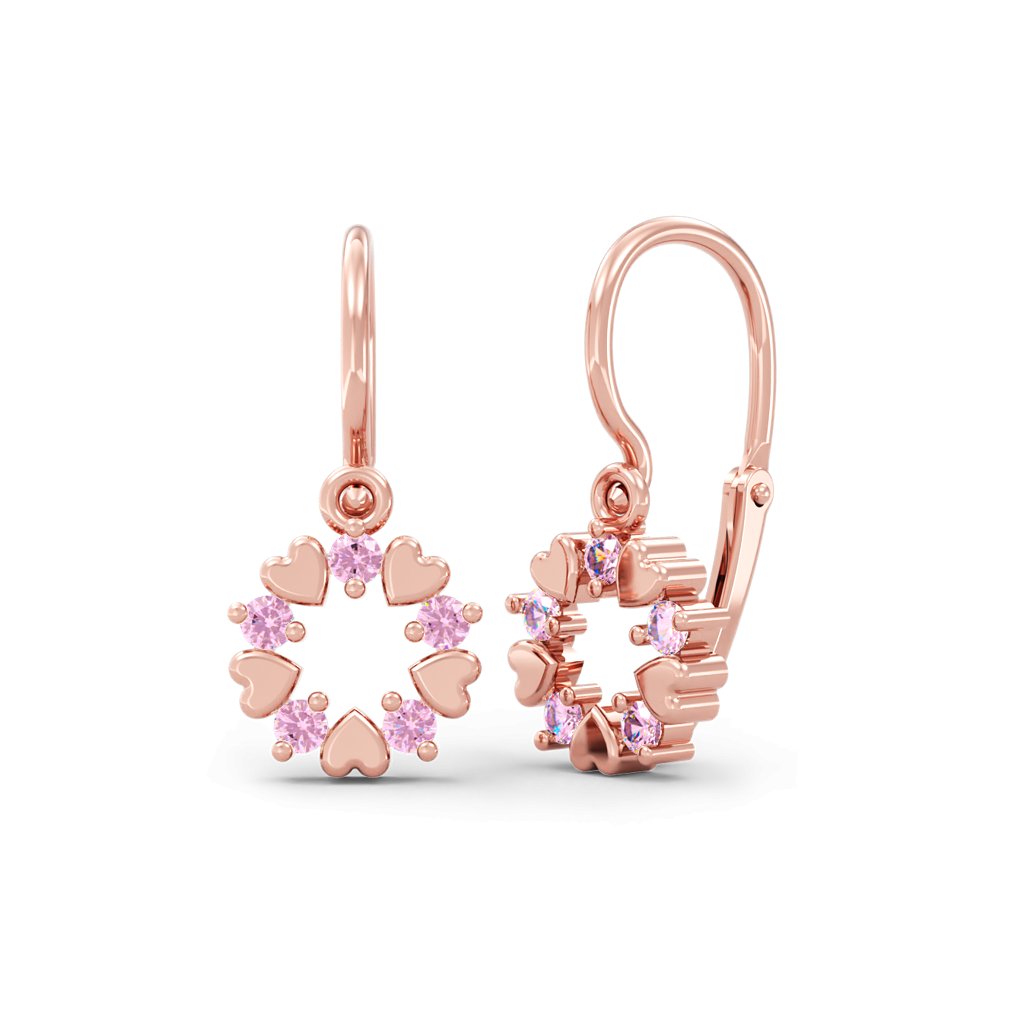 Romantické zlaté detské náušnice s ružovými zirkónom VANESA z ružového zlata