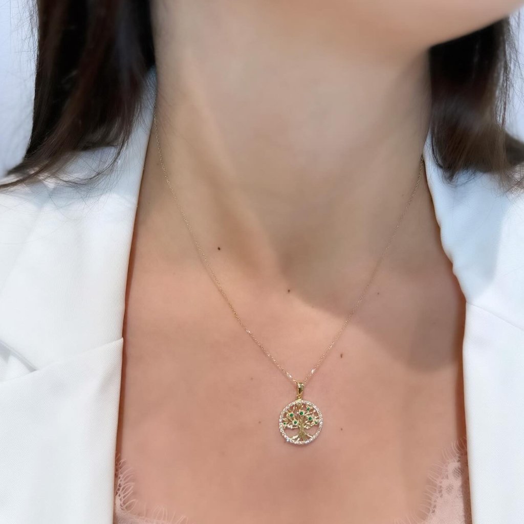 Krásný zlatý přívěšek s hlubokou symbolikou. Strom života je symbolem rodiny a rodových vazeb. Je ozdoben květy z jiskřivých zirkonů. Celý strom je ukryt ve středu kruhu, symbolu věčného pohybu.