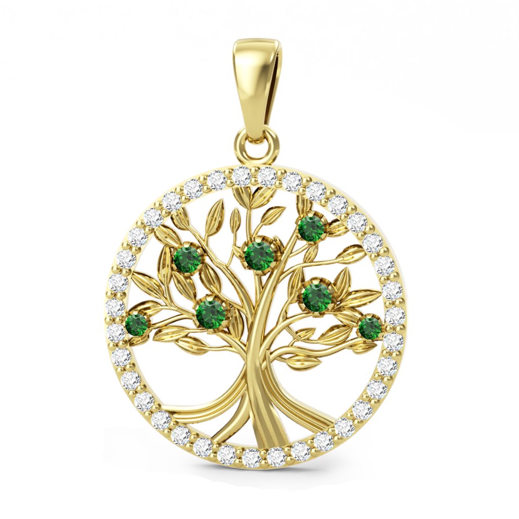VIDA zlatý prívesok so zelenými zirkónmi STROM ŽIVOTA žlté zlato