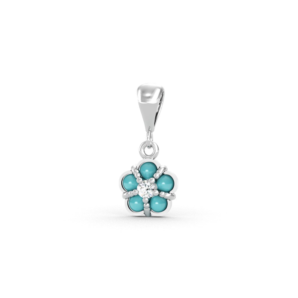 Popis: Zlatý dětský prívesok se zabudničkou s tyrkysovými okvetnými lístkami a kamienkom v strede. S voľným očkom na retiazku. Jemný kvet s drahokamom podčiarkne pôvab vašich malých slečien. Môžete si vybrať z troch farieb zlata. Veľkosť šperku 6,5x15 mm.