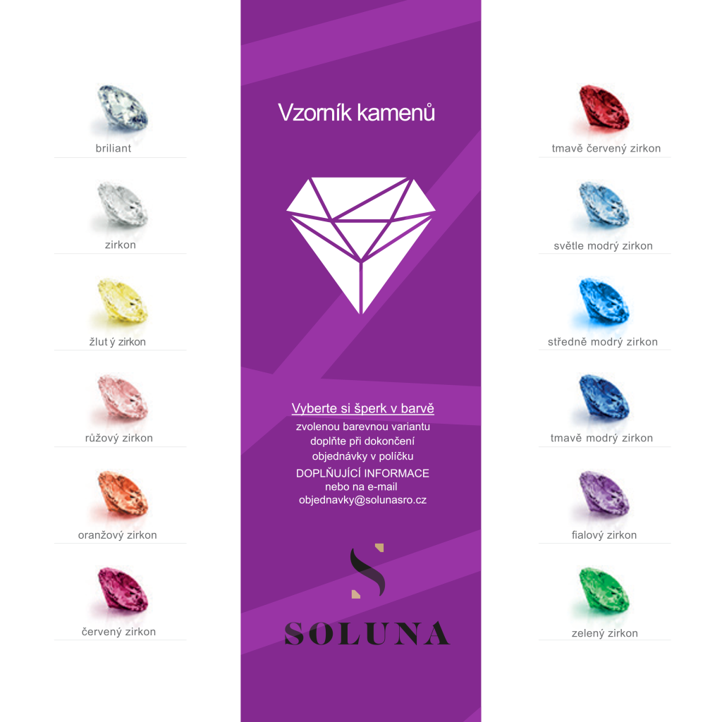 Kameny: 24 kusů kubického zirkonu - barvu lze na přání libovolně kombinovat, stačí barevnou volbu zapsat do poznámky na konci objednávky