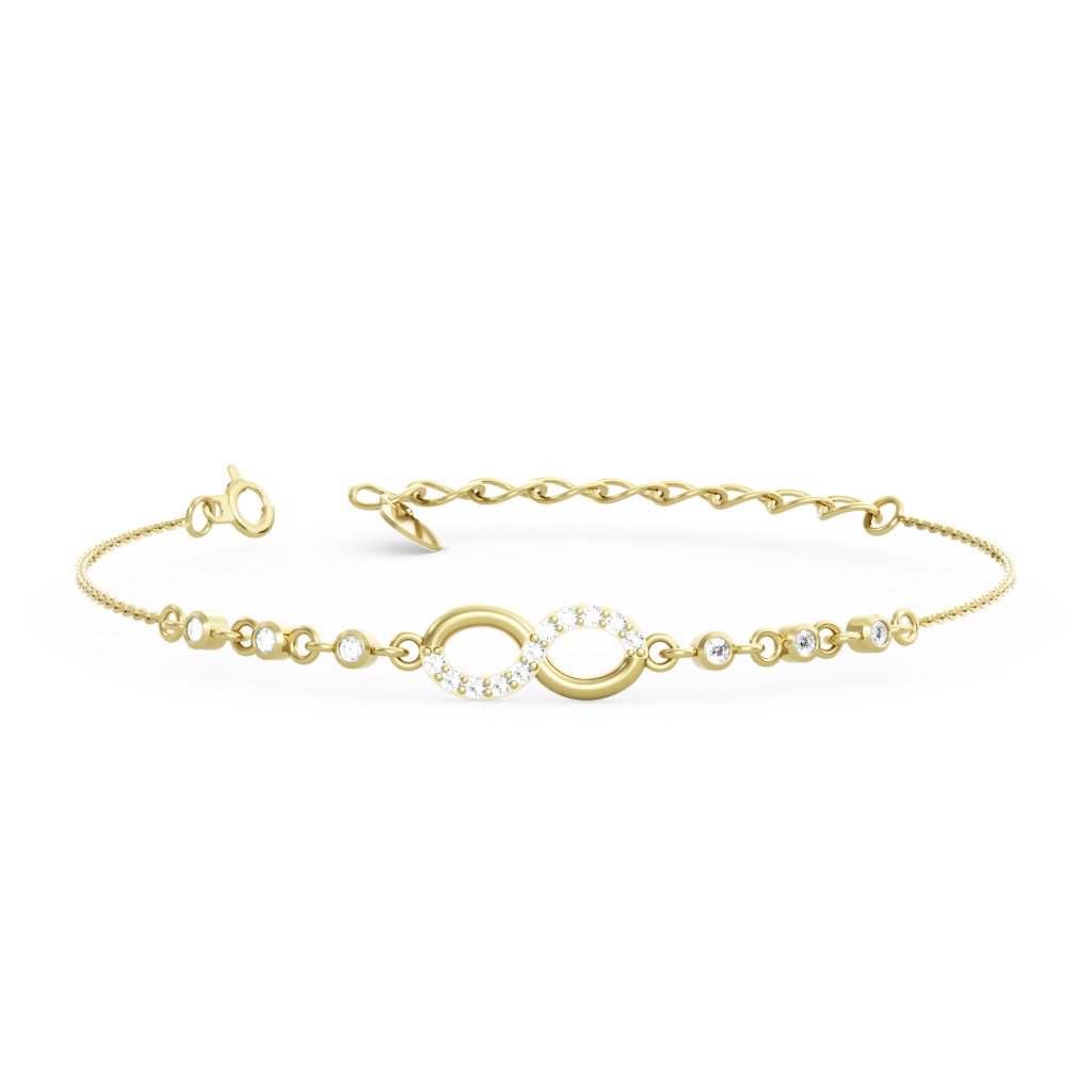 Zlatý náramek se symbolem nekonečna a nastavitelnou délkou ze žlutého zlata se zirkony INFINITY