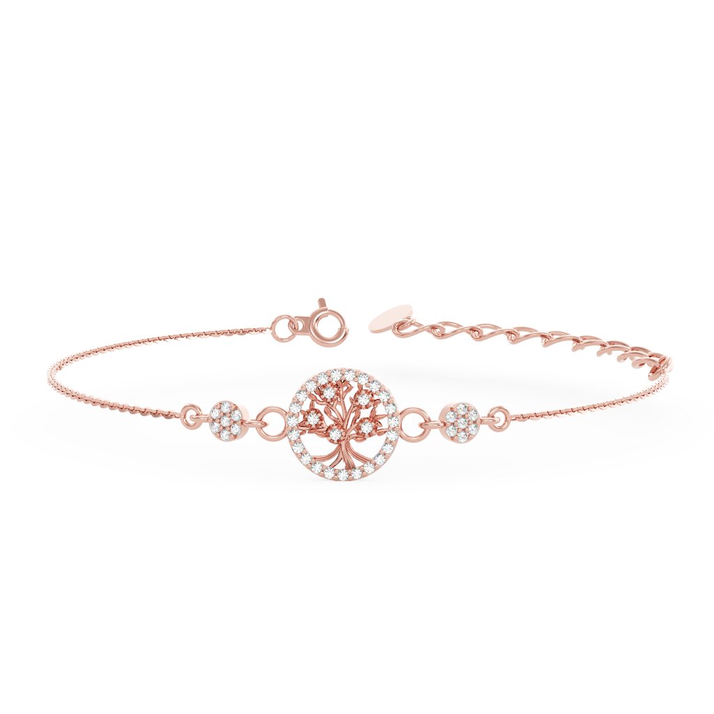 Zlatý náramek VIDA se stromem života a nastavitelnou délkou z růžového zlata se zirkony